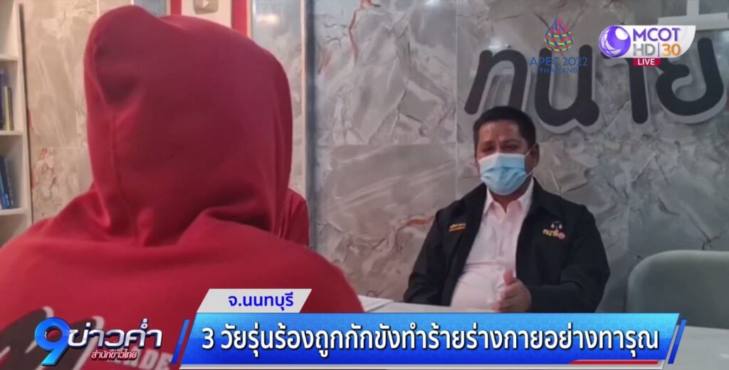 นนทบุรี 13 พ.ย. – ผู้ปกครองพาวัยรุ่นชาย 3 คน ขอความช่วยเหลือทนายความให้ติดตามคดี หลังจากถูกกลุ่มวัยรุ่นต่างสถาบันขู่บังคับไปทำร้ายร่างกายอย่างโหดเหี้ยม