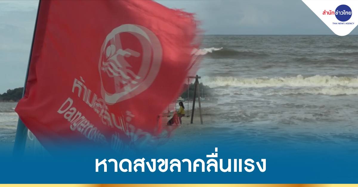คลื่นลมในอ่าวไทยที่มีกำลังแรงขึ้นอย่างต่อเนื่อง ทำให้เทศบาลนครสงขลา ต้องทำการปักธงแดง บริเวณหาดชลาทัศน์ต่อเนื่องหาดสมิหลา อำเภอเมือง จังหวัดสงขลา เป็นสัญลักษณ์เตือนภัยห้ามนักท่องเที่ยวลงเล่นน้ำทะเลริมชายหาด เพื่อลดความเสี่ยงที่จะเกิดอันตรายขึ้น ทำให้ประชาชนและนักท่องเที่ยว ที่เดินทางมาผักผ่อนริมชายหาด ต้องหันมาเน้นการทำกิจกรรมริมหาด ทั้งการนั่งเล่นริมหาดรับลมเย็น ถ่ายภาพ ชมเกาะหนูเกาะแมวเป็นต้น โดยพบว่าเรือประมงพื้นบ้านขนาดเล็กทั้ง 6 อำเภอ ต้องงดออกทำการประมงกันอีกครั้ง รอให้คลื่นลมสงบสภาพดีขึ้น จึงจะออกทำการประมงกันอีกครั้ง.-สำนักข่าวไทย