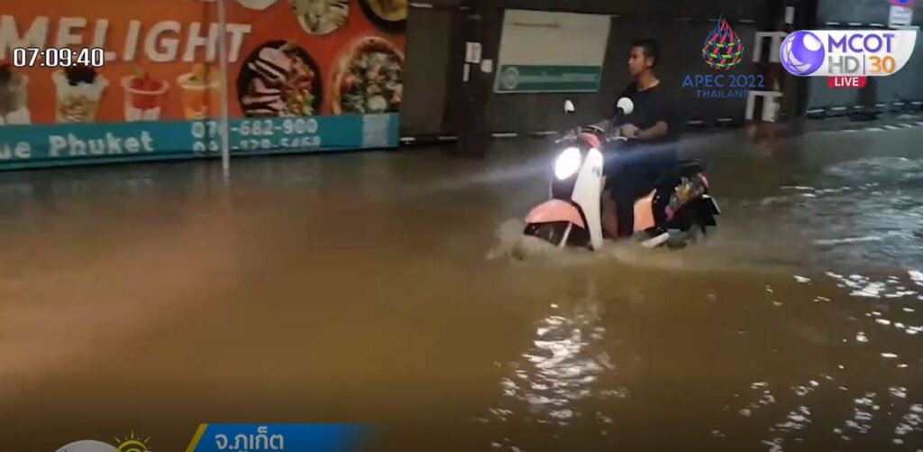 เมื่อเวลาประมาณ 22.30 น. วานนี้ (15 พ.ย.) มีการประกาศปิดการจราจรชั่วคราวบริเวณเส้นทางกะทู้-ป่าตอง ห้ามรถยนต์ทุกชนิดผ่าน อนุญาตให้ผ่านเฉพาะรถจักรยานยนต์ เนื่องจากมีน้ำท่วมขังจากฝนที่ตกหนักติดต่อกันนานหลายชั่วโมง