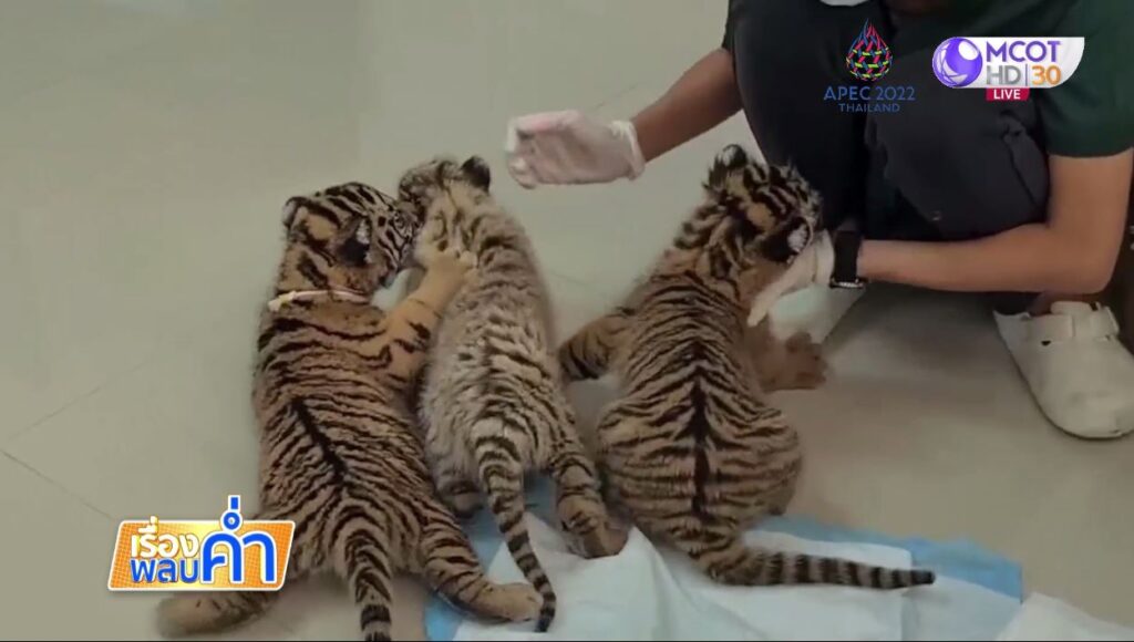 อุบลราชธานี 16 พ.ย. – เจ้าหน้าที่นำลูกเสือโคร่ง 4 ตัว ที่ยึดได้จากขบวนการลักลอบค้าสัตว์ป่า นำมาอนุบาลไว้ชั่วคราวที่สำนักบริหารพื้นที่อนุรักษ์ที่ 9 อ.เมืองอุบลราชธานี