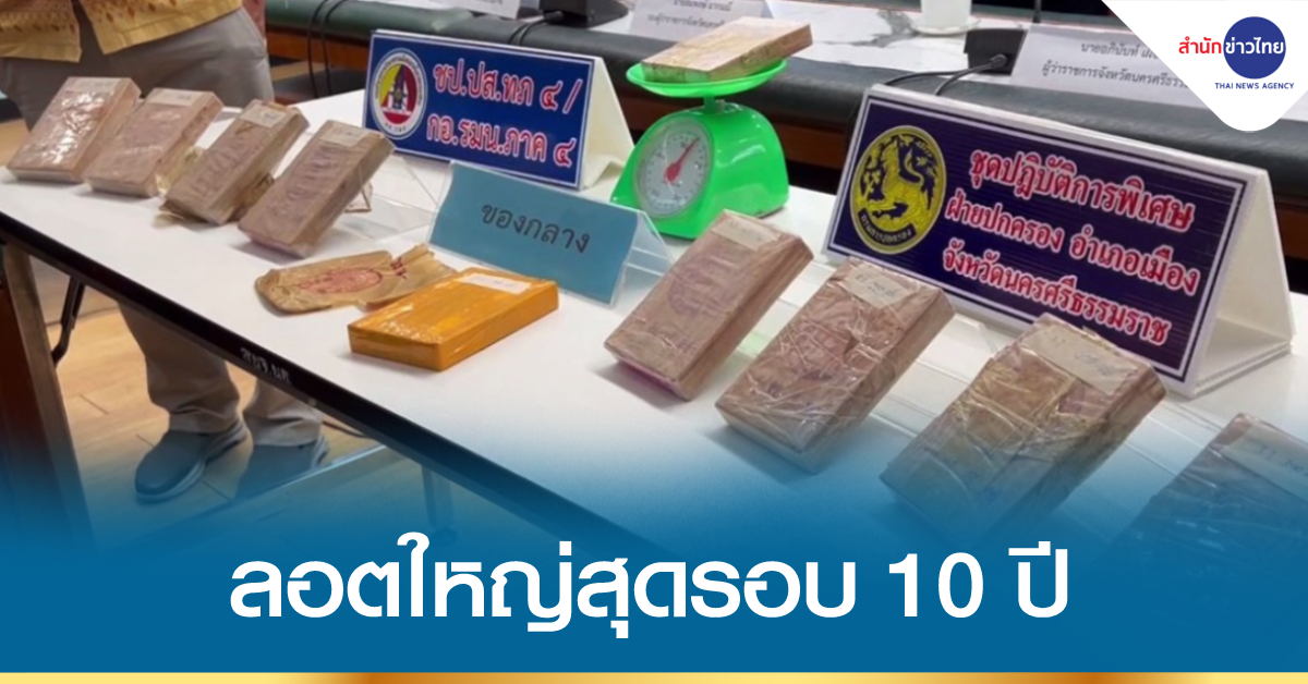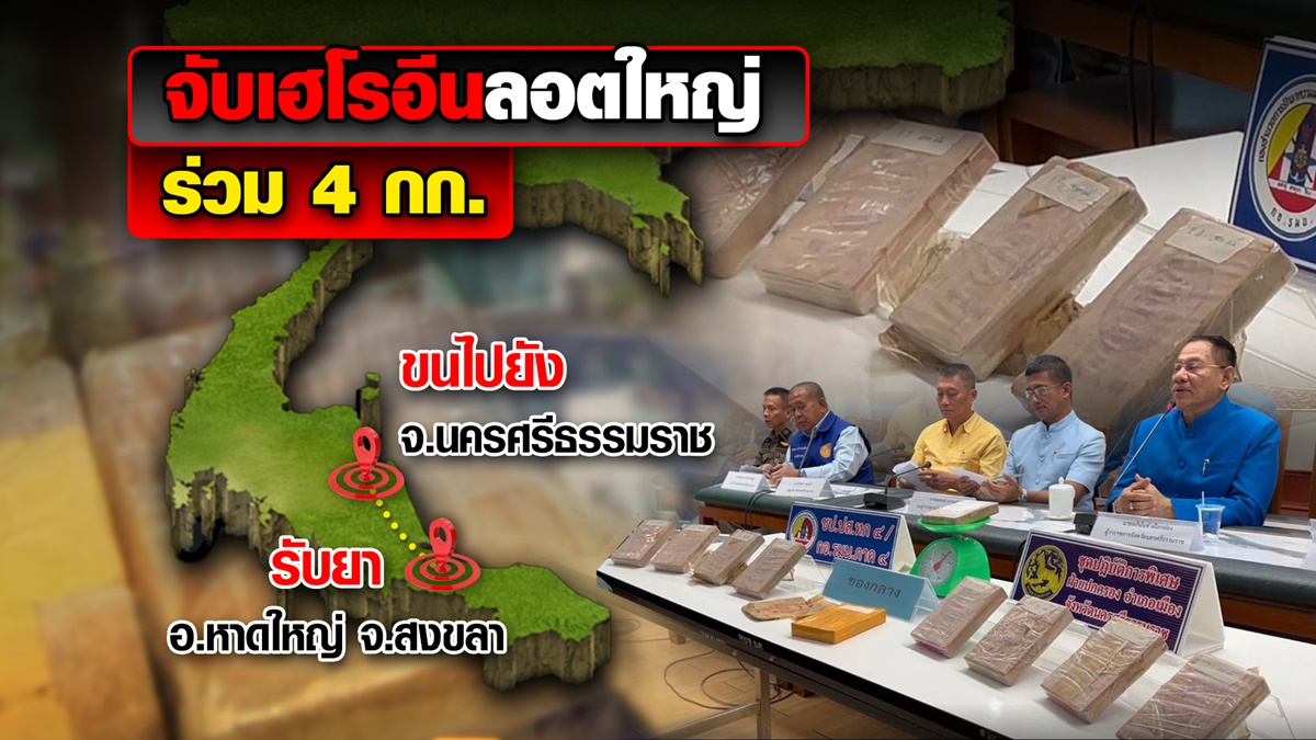 นครศรีธรรมราช 18 พ.ย. – จ.นครศรีธรรมราช จับเฮโรอีนลอตใหญ่สุดในรอบ 10 ปี น้ำหนักเกือบ 4 กก. ส่งนายทุนขนอม เชื่อนำไปจำหน่ายให้นักท่องเที่ยวต่างชาติ ส่วนที่ จ.ลำปาง ยึดยาบ้า 5 ล้านเม็ด ซุกกล่องทิชชู