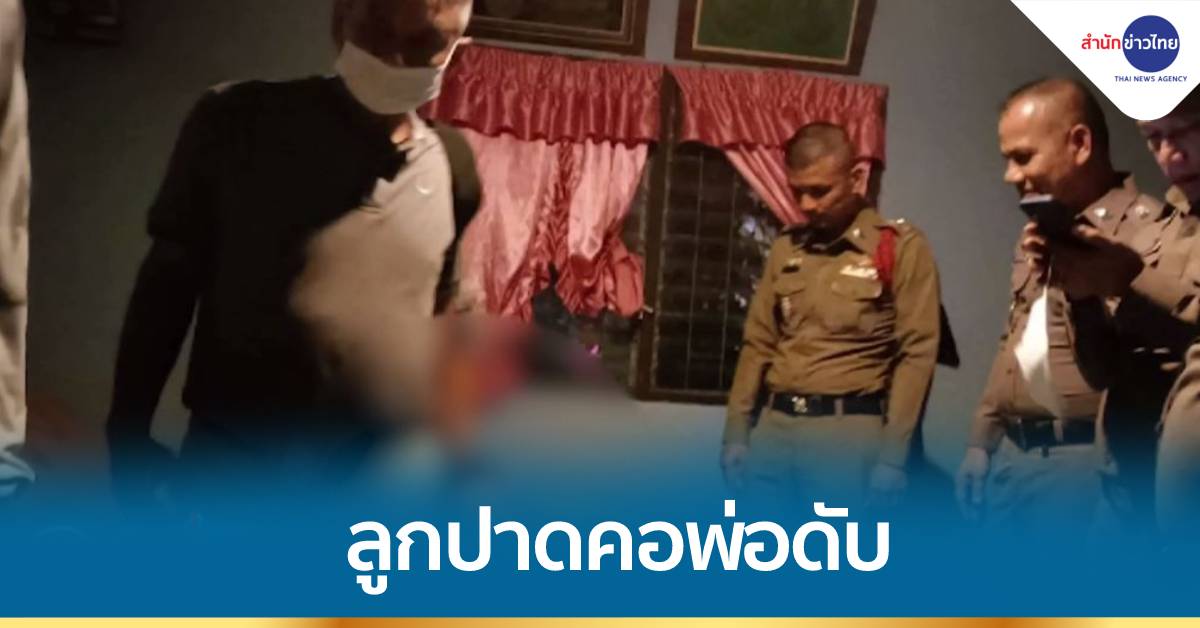 ภายในห้องรับแขก พบนายอานนท์ อายุ 25 ปี ซึ่งเป็นลูกชายผู้เสียชีวิต นั่งรอมอบตัวด้วยใบหน้าที่เรียบเฉย ตำรวจจึงควบคุมตัวไปสอบปากคำ สอบสวนเบื้องต้นทราบว่า ก่อนเกิดเหตุนายอุทัย ผู้เป็นพ่อ ให้ลูกชายไปขอเงินจากยายเพื่อซื้อใบจาก แต่ยายไม่ให้ พอลูกกลับบ้านมาบอก นายอุทัยไม่พอใจ จึงถีบหน้าลูกจนล้มลง และด้วยความโมโห นายอานนท์ จึงไปคว้ามีดทำครัวเข้าไปหวังจะทำร้ายพ่อ แต่เกิดการยื้อแย่งกันขึ้น ก่อนที่จะใช้มีดทำครัวปาดคอพ่อจนเสียชีวิต จากนั้นก็นำมีดที่เปื้อนเลือดไปล้าง และเปลี่ยนเสื้อผ้าที่เปื้อนเลือด แล้วเดินไปบอกกับญาติว่า ได้ฆ่าพ่อตายแล้ว และขอให้แจ้งตำรวจด้วย