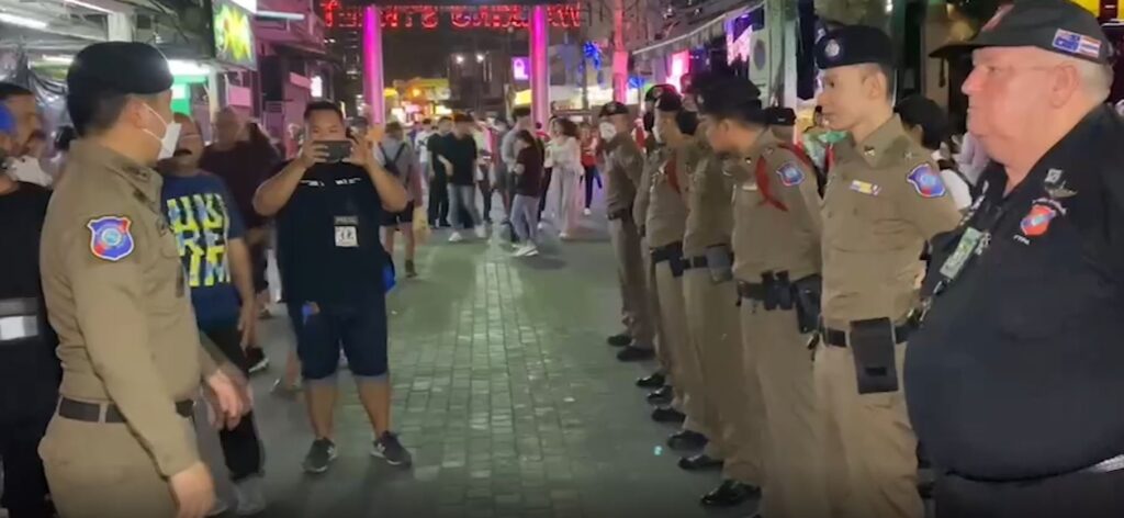 ส่วนที่ถนนวอล์กกิ้งสตรีท พัทยา ตำรวจท่องเที่ยว พร้อมอาสาสมัครทั้งชาวไทยและชาวต่างชาติ ร่วมกันกวดขันกรณีขายบริการตามชายหาดเมืองพัทยา พร้อมประชาสัมพันธ์นักท่องเที่ยวระมัดระวังทรัพย์สินป้องกันการถูกฉกชิงวิ่งราว ทันทีที่กลุ่มคนเหล่านี้เห็นเจ้าหน้าที่ต่างพากันเดินหนีลงหาด จึงเชิญตัวทั้ง 36 มาทำประวัติ การกวดขันครั้งนี้เพื่อป้องกันนักท่องเที่ยวชายไทยและชาวต่างชาติถูกก่อเหตุลักทรัพย์ ถูกชิงทรัพย์ ทำร้ายร่างกาย เพราะช่วงนี้มีนักท่องเที่ยวเข้ามาท่องเที่ยวเป็นจำนวนมากในช่วงไฮซีซั่น และเทศกาลต่างๆ . – สำนักข่าวไทย