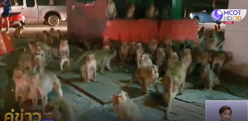 เมื่อคืนวานนี้ (26 พ.ย.) ที่พระปรางค์สามยอด ต.ท่าหิน อ.เมือง จ.ลพบุรี เกิดความแตกตื่นเมื่อบรรดาลิงน้อยใหญ่ที่อยู่ฝั่งพระปรางค์สามยอด วิ่งกรูลงถนนอลหม่าน ส่วนใหญ่เป็นแม่ลิง ต่างวิ่งหอบลูกน้อยข้ามฝั่งโดยไม่คิดชีวิต และไม่สนใจรถที่วิ่งขวักไขว่ ผู้ใช้รถใช้ถนนต้องหยุดรถกันตัวโก่งให้ลิงผ่านไป เพราะตกใจจากเสียงพลุ ตะไล ดอกไม้ไฟ ที่ดังสนั่นลั่นกลางเมืองลพบุรี ภายในงานฤดูหนาวประจำปี 2565 โรงเรียนพิบูลวิทยาลัย ฝั่งตรงข้ามพระปรางค์สามยอด
