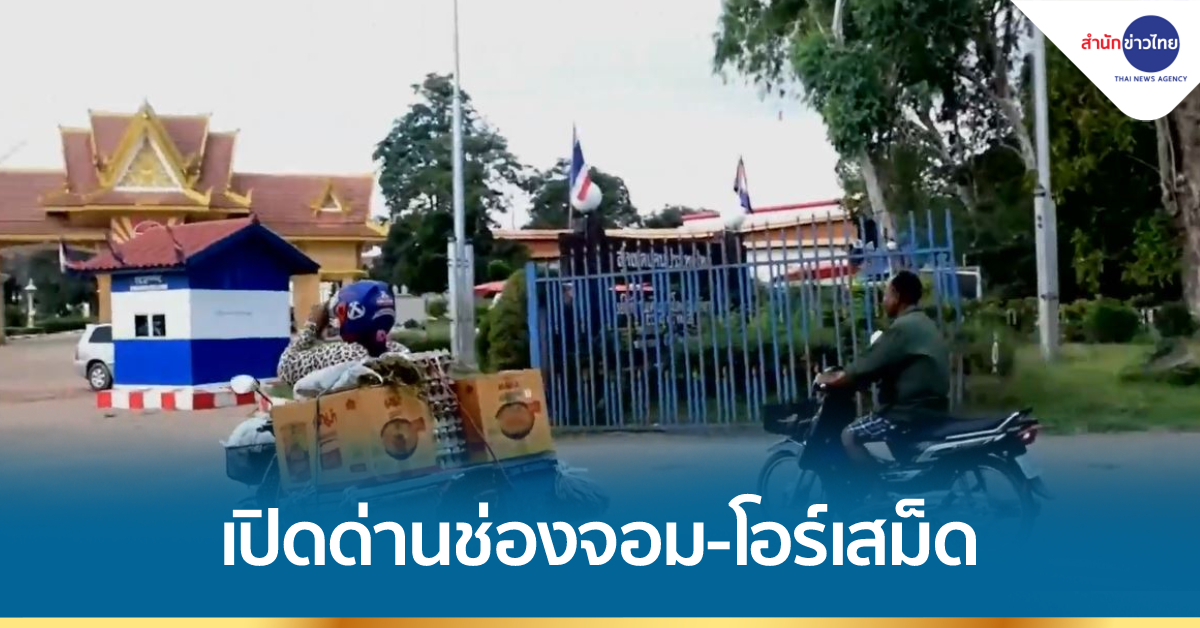 บรรยากาศการเปิดด่านผ่านแดนถาวรช่องจอม-โอร์เสม็ด หลังปิดมานานกว่า 2 ปี ตามมาตรการของรัฐบาล และสถานการณ์โควิด-19 เริ่มคลี่คลาย พบชาวกัมพูชาจำนวนมากข้ามแดนเข้ามาฝั่งไทย ทั้งมาค้าขาย พบแพทย์ และเยี่ยมญาติ ในพื้นที่ จ.สุรินทร์ มีรถขนส่งสินค้าของไทยจำนวนมากเดินทางข้ามแดน นำสินค้าไปส่งร้านค้าในฝั่งประเทศกัมพูชา