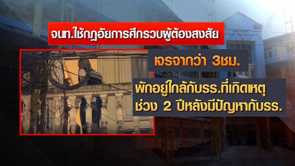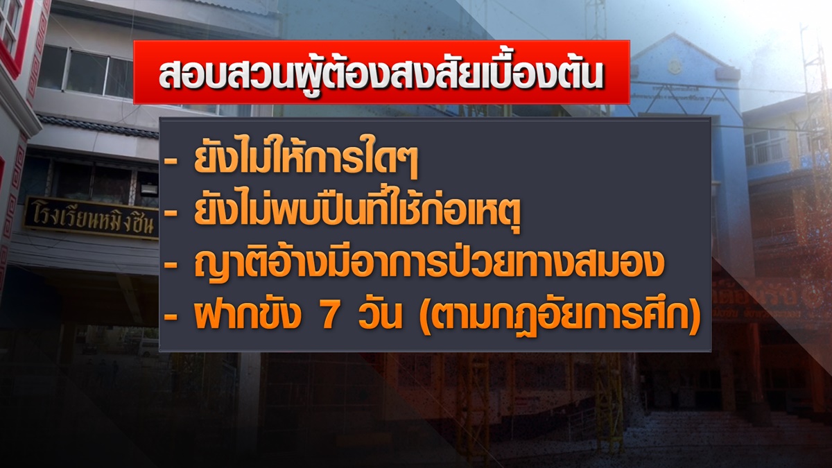 ทั้งนี้ เมื่อเจ้าหน้าที่นำตัวผู้ต้องสงสัยมาถึง สภ.เมืองระนอง ทั้งทหารและตำรวจได้ร่วมกันสอบถามถึงเหตุการณ์ที่เกิดขึ้น แต่ผู้ต้องสงสัยยังไม่ยอมให้การใดๆ โดยก่อนนำตัวมานั้น ทางญาติยังอ้างว่าผู้ต้องสงสัยมีอาการป่วยทางสมอง ซึ่งเจ้าหน้าที่ได้บอกให้นำหลักฐานมายืนยัน จากนั้นเจ้าหน้าที่ได้คุมตัวผู้ต้องสงสัยไปฝากขังที่กองร้อยทหารราบที่ 2521 หน่วยเฉพาะกิจกรมทหารราบที่ 25 กองกำลังเทพสตรี ซึ่งตามกฎอัยการศึกสามารถควบคุมผู้ต้องสงสัยได้ 7 วัน เพื่อทำการสอบสวนเรื่องราวที่เกิดขึ้น นำมาประกอบสำนวนคดี เพื่อสร้างความเชื่อมั่นให้กับผู้ปกครองที่ส่งบุตรหลานกว่า 1,500 คน มาเรียนหนังสือ. – สำนักข่าวไทย