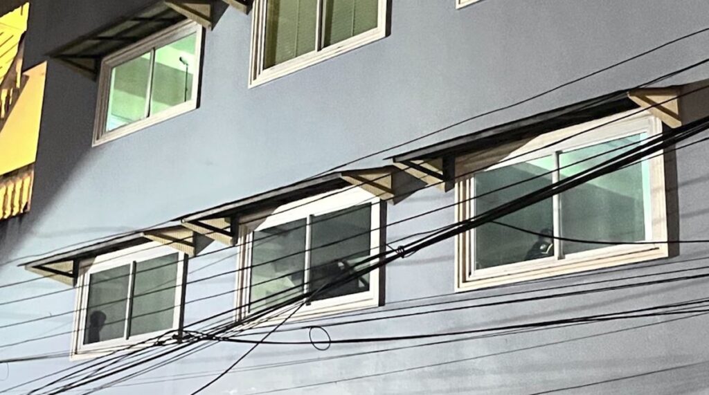 ที่พักของผู้ต้องสงสัย เป็นอาคารพาณิชย์ 4 ชั้น อยู่ติดกับทางเข้าโรงเรียน ตัวอาคารยาวไปถึงโรงเรียน โดยเจ้าหน้าที่เข้าพูดคุยกับบุคคลในบ้าน เพื่อทำการควบคุมตัวผู้ต้องสงสัย ตามข้อมูลที่ได้รับจากบุคลากรครูและประชาชนใกล้เคียงพื้นที่จุดเกิดเหตุ ซึ่งก่อนหน้านี้ ผู้ต้องสงสัยมีปัญหาร้องเรียนกับโรงเรียนมาตลอด โดยขณะเจ้าหน้าที่ควบคุมตัวผู้ต้องสงสัย มีประชาชนและผู้ปกครองมาเฝ้าติดตามสถานการณ์