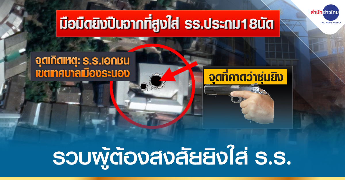 เมื่อเวลาประมาณ 15.00 น. วานนี้ (27 พ.ย.65) เกิดเหตุคนร้ายใช้ปืนยิงเข้าไปภายในลานกิจกรรมหน้าเสาธงของโรงเรียนเอกชนสอนภาษาจีน ระดับประถมศึกษา ในพื้นที่ อ.เมืองระนอง จ.ระนอง ขณะเกิดเหตุมีนักเรียน 7-8 คน อยู่ภายในโรงเรียน โดยเข้ามาที่โรงเรียนในวันหยุด เพื่อฝึกซ้อมเตรียมแข่งขันทักษะวิชาการ ที่บริเวณลานกิจกรรมดังกล่าว โดยเสียงปืนดังมาจากอาคาร 4 ซึ่งอยู่ด้านข้างโรงเรียน ทำให้นักเรียนและครูต้องพากันวิ่งหนีเข้าไปหลบในอาคารเรียน