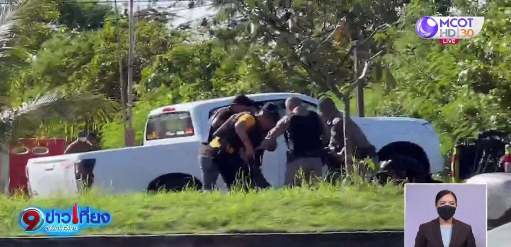 นครศรีธรรมราช 29 พ.ย. – เหตุหนุ่มเมายาขับกระบะชักดาบค่าน้ำมัน ก่อนชักปืนยิงตำรวจบาดเจ็บ เจ้าตัวยอมรับที่ไม่ยอมให้จับ และตัดสินใจสู้ตำรวจ เพราะเครียดที่มียาบ้าในรถ เบื้องต้นตำรวจแจ้งหลายข้อหาหนัก