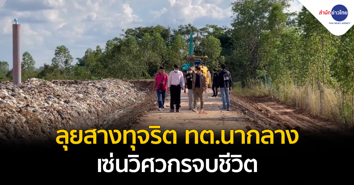 หนองบัวลำภู 30 พ.ย. – หน่วยตรวจสอบทุจริต ทั้ง ป.ป.ช., สตง. และ ป.ป.ท. ระดมกำลังลงพื้นที่เทศบาลตำบลนากลาง จ.หนองบัวลำภู ตามเบาะแสในจดหมายลาตายของวิศวกรหนุ่มที่ทนวัฒนธรรมการทุจริตไม่ไหว เบื้องต้นพบโครงการก่อสร้างซ่อมแซมถนนผิดสเปกในบางจุด แต่จะสรุปว่า มีการทุจริต หรือมีหลักฐานเอาผิดคนทุจริตหรือไม่ ต้องใช้เวลาตรวจสอบเชิงลึก