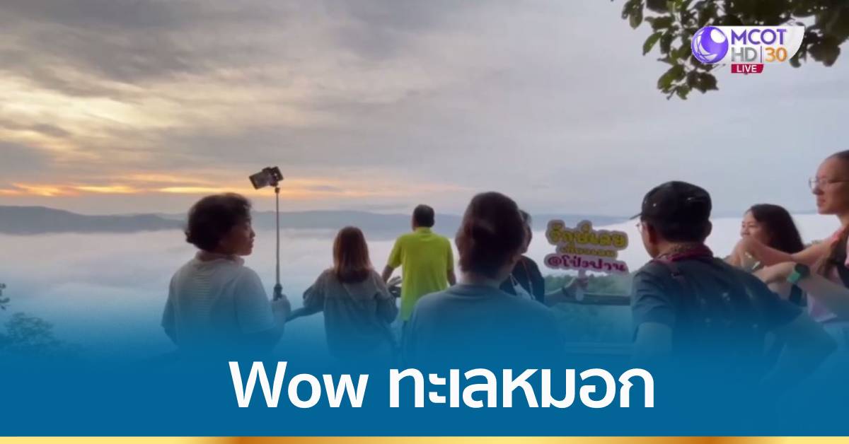 เลย 1 ธ.ค. – สวยจนร้อง Wow! กลุ่มนักท่องเที่ยวเกาหลีกว่า 30 คน ตื่นตากับภาพทะเลหมอกขาวโผลนสุดตา ท่ามกลางพระอาทิตย์ทอแสง บริเวณจุดชมวิวโป่งฟาน บ้านบึงกุ่ม อ.ด่านซ้าย จ.เลย