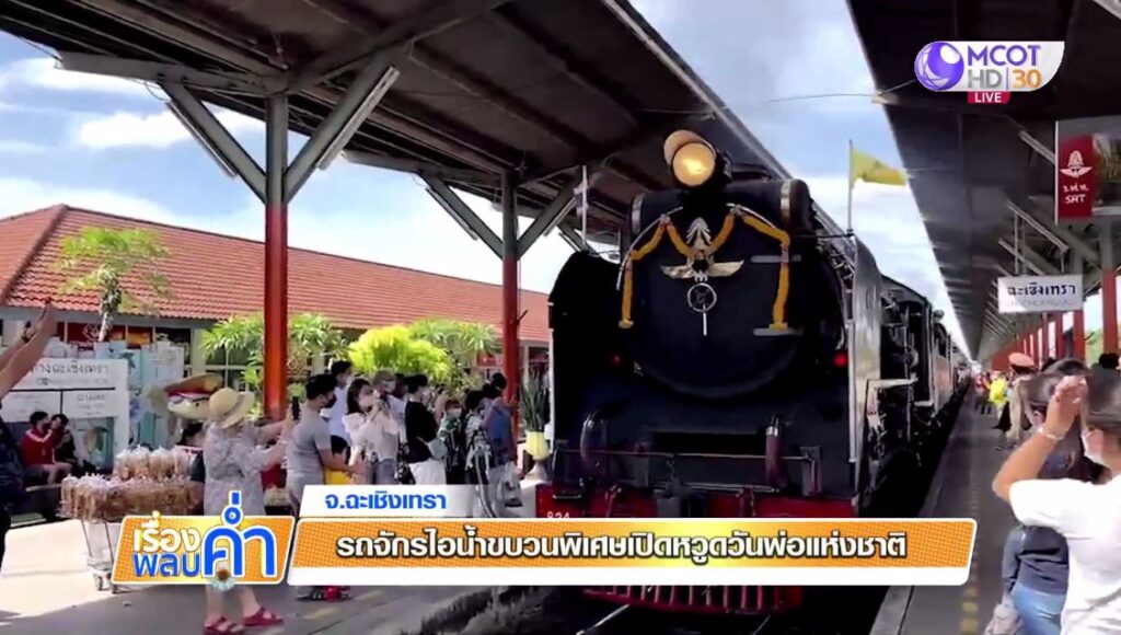 ฉะเชิงเทรา 5 ธ.ค. – ประชาชนให้ความสนใจรถจักรไอน้ำขบวนพิเศษ กรุงเทพ-ฉะเชิงเทรา รุ่นประวัติศาสตร์ เส้นทางกรุงเทพ-ฉะเชิงเทรา เนื่องในโอกาสเฉลิมพระเกียรติ 5 ธันวาคม ประชาชนรอรับแน่นสถานี