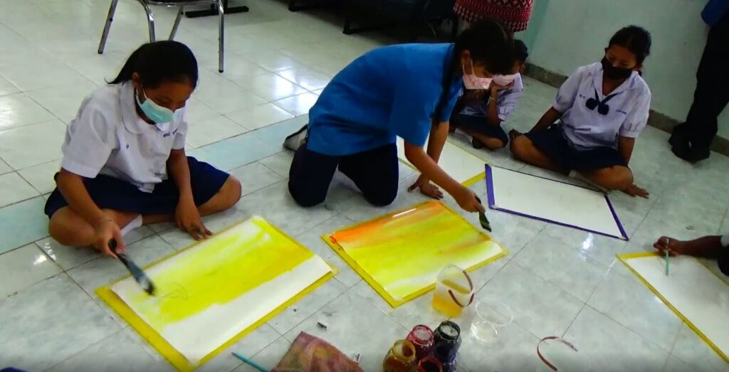 ขณะที่ น้องทิว นักเรียนชั้น ป.3 โรงเรียนเทศบาลวัดตรังคภูมิพุทธาวาส กล่าวว่า รู้สึกดีใจที่พี่เขามาสอน ทำให้ได้เรียนรู้ศิลปะและรักในศิลปะมากขึ้น ได้มีความรู้ทางสีน้ำได้เยอะขึ้น ส่วนภาพที่ได้ในวันนี้ จะนำไปอวดปู่กับย่า.-สำนักข่าวไทย