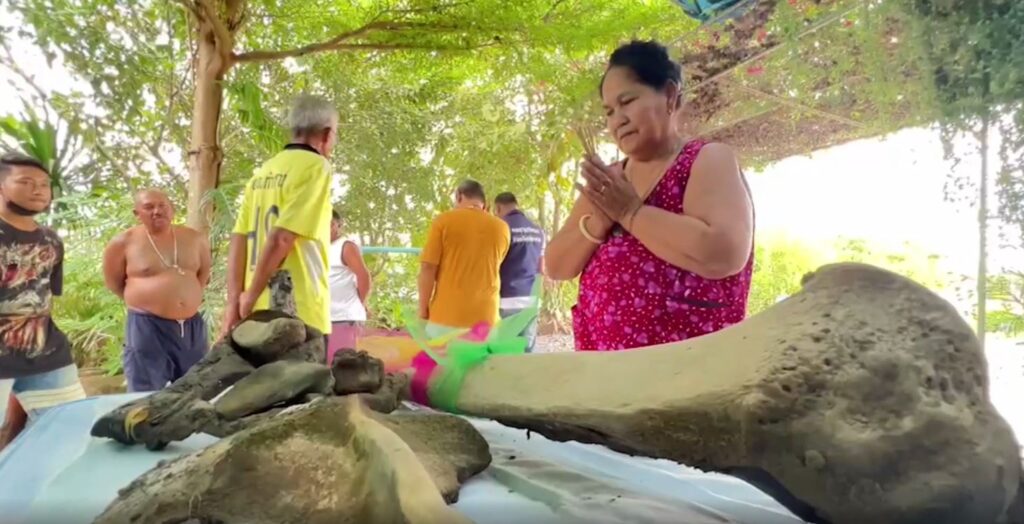 สมุทรสงคราม 6 ธ.ค.- ชาวบ้านสมุทรสงครามพบกระดูกช้างโบราณกลางสวนสน แจ้งเจ้าหน้าที่ตรวจสอบ ก่อนตั้งโต๊ะบูชา เชื่อมาให้โชคลาภ