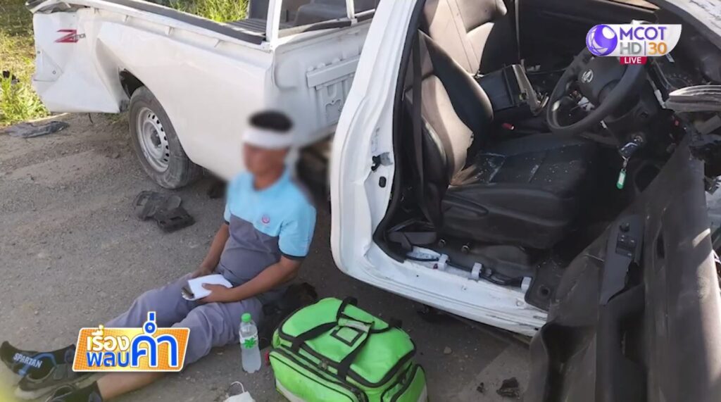 ขณะที่เจ้าหน้าที่กู้ภัยมาถึง ถามตอบรู้เรื่อง จึงรีบช่วยเหลือ ปฐมพยาบาลบาดแผลบริเวณศีรษะและหางคิ้ว ก่อนที่รถ รพ.พุทธโสธร จะมารับตัวไปรักษา.-สำนักข่าวไทย
