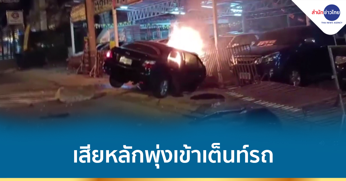 ที่เกิดเหตุ พบรถยนต์สีดำ ชนแบริเออร์คอนกรีตของอุโมงค์ทางลอดข้ามแยกวนารมย์ ที่กำลังก่อสร้าง ก่อนเสียหลักพุ่งชนรถยนต์มือสองที่จอดภายในเต็นท์รถยนต์ หจก.ศักดิ์สิทธิ์การยนต์ จนเกิดเพลิงลุกไหม้และลุกลามไปรถกระบะภายในเต็นท์ได้รับความเสียหาย 3 คัน และได้รับความเสียหายจากแผงกั้นเหล็กล้มทับรถกระบะ 3 คัน เจ้าหน้าที่ดับเพลิงใช้เวลาประมาณ 10 นาที สามารถควบคุมเพลิงไว้ได้