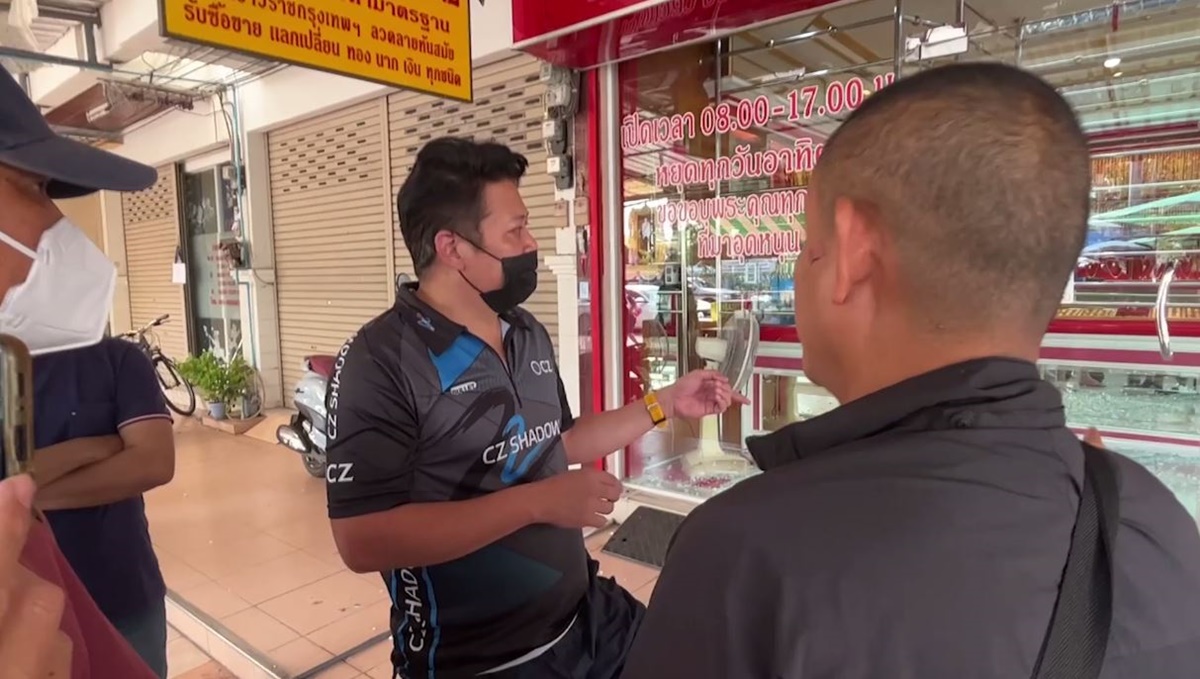ที่เกิดเหตุเป็นร้านขายทอง ด้านหน้าร้านมีผู้คนพลุกพล่าน กระจกด้านหน้าร้านแตกละเอียด มีคนร้ายถูกยิงบาดเจ็บนอนคว่ำหน้า สวมเสื้อแจ็กเก็ตแขนยาว ถูกเจ้าของร้านยิงเข้าที่บริเวณหน้าท้อง เลือดไหลนองเต็มพื้นถนน ตรวจสอบภายในร้านทอง มีนายพิสิฐ อายุ 46 ปี เจ้าของร้าน ยืนรอให้การกับเจ้าหน้าที่ตำรวจ