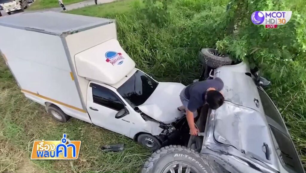 กู้ภัยนำรถกระบะเปิดสัญญาณไฟเตือนให้รู้ว่ามีอุบัติเหตุและให้คันอื่นเพิ่มความระมัดระวัง แต่ระหว่างกำลังให้การช่วยเหลือและเคลียร์พื้นที่ จู่ๆ รถยนต์กระบะอีกคันขับมาด้วยความเร็ว พุ่งชนรถยนต์กู้ภัยที่จอดให้สัญญาณอยู่ กระเด็นไปชนรถยกอีกคัน จนกระเด็นตกคูน้ำกลางถนน