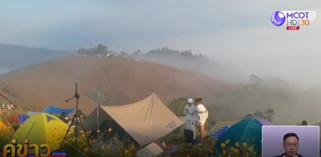 ที่ จ.เลย ในหลายพื้นที่ยังคงหนาวเย็นต่อเนื่อง โดยช่วงวันหยุดยาว แหล่งท่องเที่ยวตามภูคึกคักไปด้วยนักท่องเที่ยว เช่น นาท่อนแคมป์วิว บ้านนาท่อน ต.นาพึง อ.นาแห้ว จ.เลย จุดแคมป์บนยอดเขาของไร่ข้าวโพดชาวบ้าน หลังจากเก็บเกี่ยวผลผลิตเสร็จเรียบร้อยได้ดัดแปลงเป็นลานกางเต็นท์ เพื่อรองรับนักท่องที่ยวที่เดินทางมานอนค้างแรม กางเต็นท์ แคมปิ้ง ดูดาว สัมผัสอากาศหนาว ตื่นเช้ามาชมทะเลหมอกและพระอาทิตย์ขึ้นแบบฟินๆ ท่ามกลางอุณหภูต่ำสุดบนยอดภูเช้านี้ 15 องศาเซลเซียส