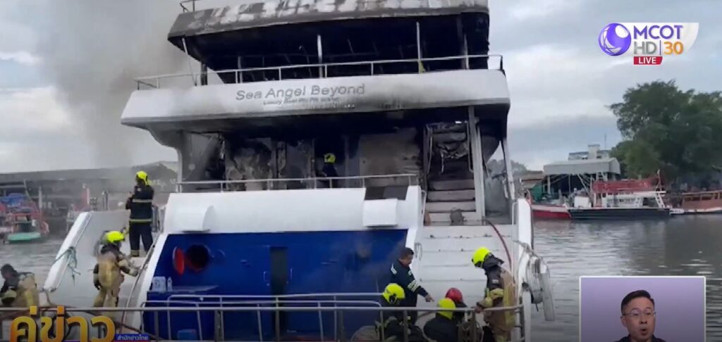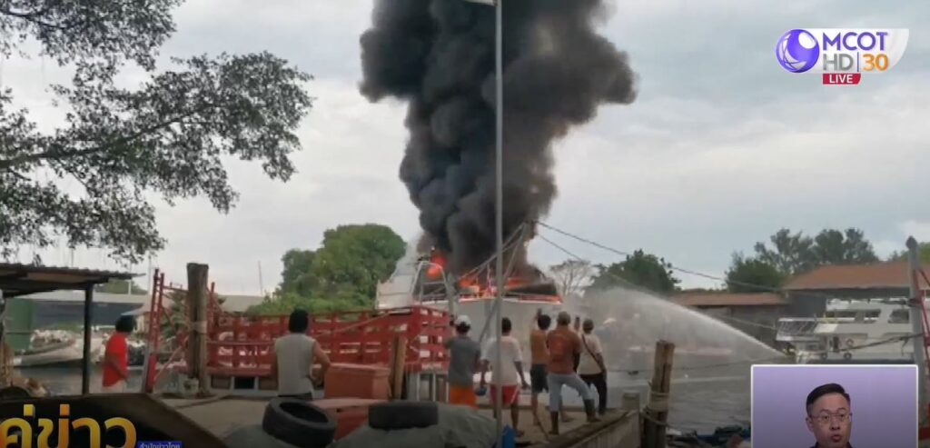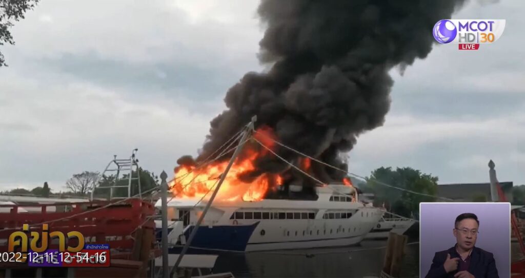ภูเก็ต 11 ธ.ค. – ไฟไหม้เรือครุยส์หรู จอดเทียบท่าอยู่ภายในท่าเรือองค์การสะพานปลาภูเก็ต เมื่อช่วงเช้าวันนี้ ภายในเสียหายเกือบทั้งหมด ขณะเกิดเหตุบนเรือไม่มีนักท่องเที่ยวหรือผู้โดยสาร ประเมินมูลค่าเสียหายอย่างน้อย 17 ล้านบาท