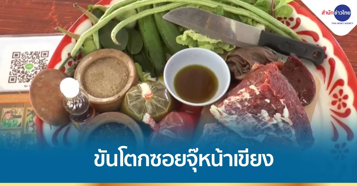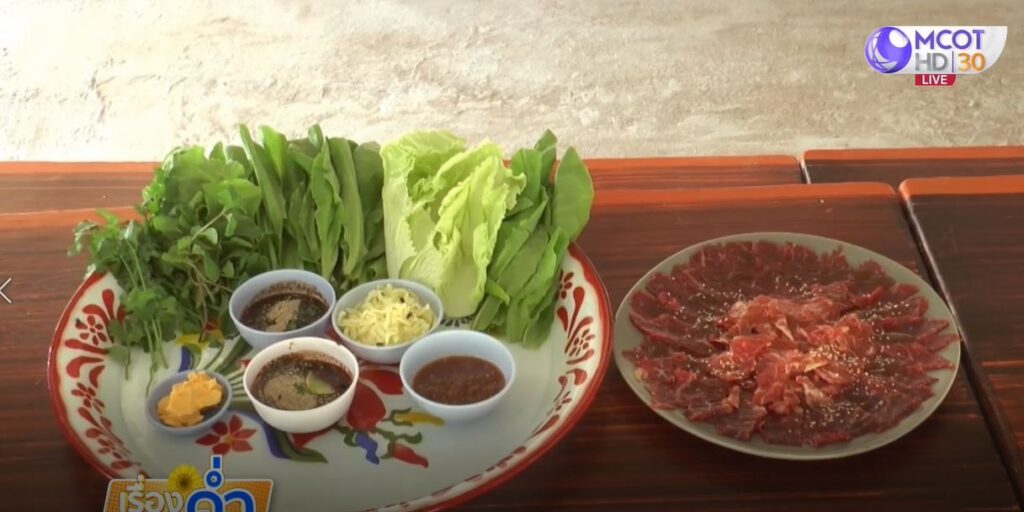 ภูมิภาค 14 ธ.ค. – ร้านลาบ จ.ยโสธร มีเมนูพิเศษชุดขันโตกหรือชุดซอยจุ๊หน้าเขียง เตรียมวัตถุดิบอุปกรณ์เครื่องปรุงและผักสดบริการให้ลูกค้าได้หั่นเนื้อ ปรุง และทำน้ำจิ้มเองตามใจชอบ