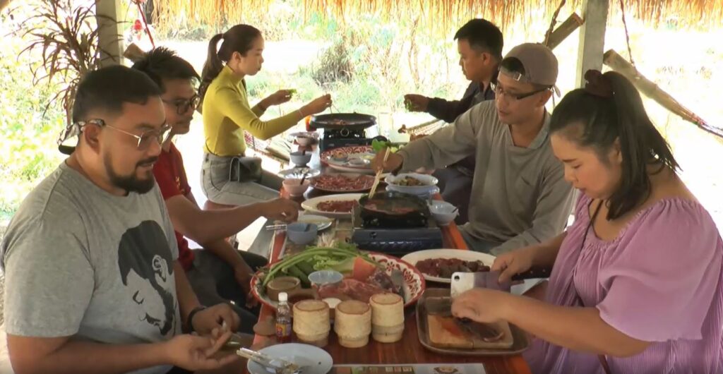 นายชาตรี ศรีไพร อายุ 39 ปี เจ้าของร้านป่าหญ้าคาเฟ่แพะ บอกว่าทางครอบครัวทำเขียงเนื้ออยู่แล้ว จึงคิดต่อยอดธุรกิจเปิดร้านลาบ โดยใช้บริเวณหน้าบ้านพักทำเป็นซุ้มที่นั่งบรรยากาศริมทุ่งนาและคิดเมนูพิเศษเอาไจลูกค้าสายเนื้อ เมนูชุดขันโตก หรือซอยจุ๊หน้าเขียง ชุดใหญ่ 499 บาท และชุดเล็ก 329 บาท เพื่อให้ทุกคนที่เข้าไปใช้บริการสามารถที่จะลงมือปรุงหรือหั่นเนื้อด้วยตนเองทางร้านได้จัดเตรียมวัตถุดิบและเครื่องปรุงต่าง ๆ เอาไว้ให้พร้อม โดยเปิดร้านมาประมาณ 1 ปี ได้รับการตอบรับจากลูกค้าเป็นอย่างดี ต่างบอกต่อปากต่อปากจนมีลูกค้าเข้าไปใช้บริการอย่างต่อเนื่องทุกวัน นอกจากนี้ทางร้านยังมีบริการให้ป้อนหญ้าแพะ ถ่ายรูปกับแพะแบบใกล้ชิดอีกด้วย.-สำนักข่าวไทย