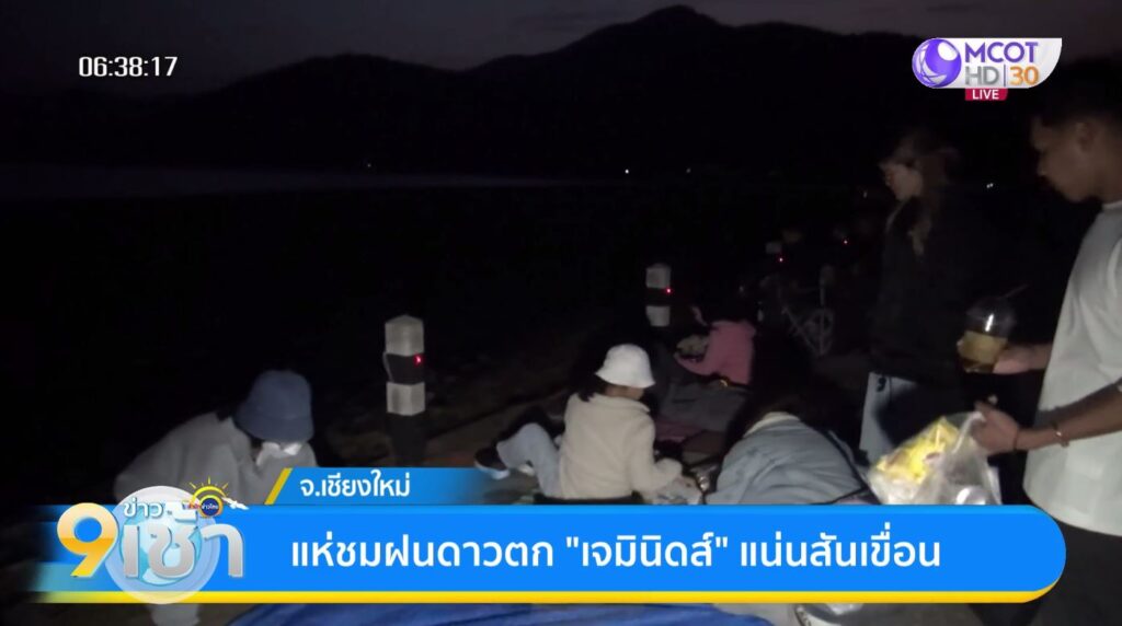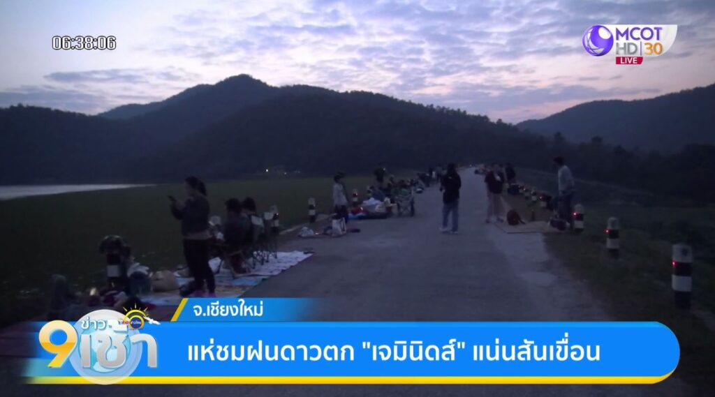 ภูมิภาค 15 ธ.ค. – แห่ชมฝนดาวตกเจมินิดส์ บริเวณสันเขื่อนอ่างเก็บน้ำห้วยลาน จ.เชียงใหม่ จนเต็มพื้นที่ ท่ามกลางอากาศหนาวเย็น ส่วนที่ฉะเชิงเทรา ประชาชนกางเต็นท์รอดูฝนดาวตกแน่นหอดูดาวเฉลิมพระเกียรติฯ