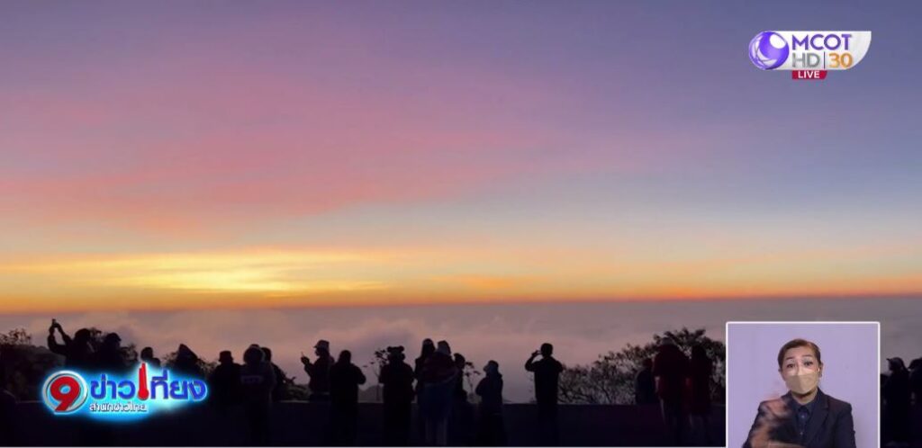 สภาพอากาศบนดอยอินทนนท์ อ.จอมทอง จ.เชียงใหม่ ยังหนาวเย็นต่อเนื่อง นักท่องเที่ยวหลั่งไหลท้าลมหนาว ชมความสวยงามของทะเลหมอก ท้องฟ้าเปลี่ยนเป็นสีทอง รับแสงยามเช้า บริเวณจุดชมวิวกิ่วแม่ปาน กิโลเมตรที่ 42 เช้านี้อุณหภูมิ 5 องศาเซลเซียส หนาวจนปากสั่น แต่ละคนจัดเต็มแฟชั่นชุดกันหนาว ถ่ายภาพเป็นที่ระลึก ทำให้จุดชมวิวกิ่วแม่ปานมีนักท่องเที่ยวขึ้นไปโต้ลมหนาววันละกว่า 2,000 คน ในวันธรรมดาหากเป็นวันหยุดยาว หรือเสาร์อาทิตย์ นักท่องเที่ยวทะลุวันละกว่า 5,000 คน คาดว่าช่วงสิ้นปีส่งท้ายปีเก่าต้อนรับปีใหม่ที่มีวันหยุดยาวติดต่อกันหลายวัน นักท่องเที่ยวน่าจะเพิ่มขึ้นเท่าตัว ขณะนี้บ้านพักถูกจองจนเต็มข้ามปี