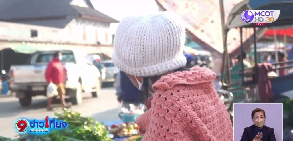 ส่วน จ.เลย อุณหภูมิลดลงอย่างต่อเนื่องในเขตเทศบาลเมืองเลย อุณหภูมิสุดเช้าวันนี้ อยู่ที่ 11 องศาเซลเซียส ภาพมุมสูงในเขตเทศบาลเมืองเลย มีภูเขาล้อมรอบ และแม่น้ำเลยที่ไหลผ่านตัวเขตเทศบาล ตามหุบเขามีหมอกปกคลุม ประชาชนพ่อค้าแม่ค้าตลาดเช้า ต้องนำเครื่องกันหนาวหลากสีสันออกมาใส่ขายของที่ตลาด