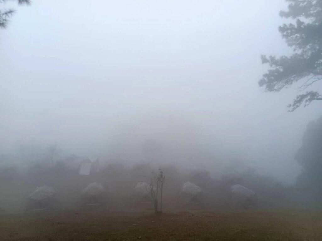 บรรยากาศเช้านี้ (18 ธ.ค.) บริเวณจุดชมวิวดอยกิ่วลม บนอุทยานแห่งชาติห้วยน้ำดัง อำเภอแม่แตง จังหวัดเชียงใหม่ เชื่อมต่อจังหวัดแม่ฮ่องสอน เต็มไปด้วยไอหมอกปกคลุมทั่วบริเวณ ท่ามกลางอากาศที่หนาวเย็นอุณหภูมิต่ำสุดลดเหลือ 10 องศาเซลเซียส นักท่องเที่ยวนับพันแห่สัมผัสความหนาวเย็นและความสวยงามของไอหมอก
