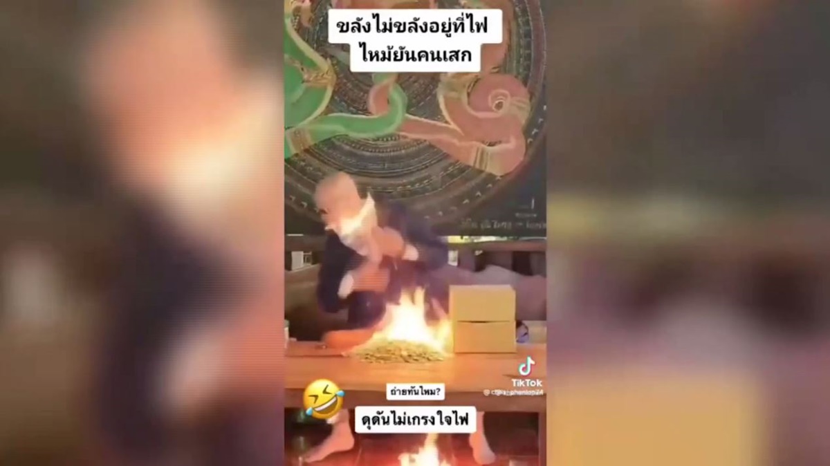 อุดรธานี 22 ธ.ค. – เพจดังโพสต์คลิป “พระพ่นไฟ” ไฟลามไหม้ปากและหน้าอก ด้านเจ้าอาวาสวัดที่ จ.อุดรธานี เผยเป็นการทำพิธีปลุกเสกพระเครื่อง “เจ้าสัวแสนล้าน” ที่ญาติโยมทำมาถวาย เพื่อมอบให้ผู้มาทำบุญสร้างโบสถ์