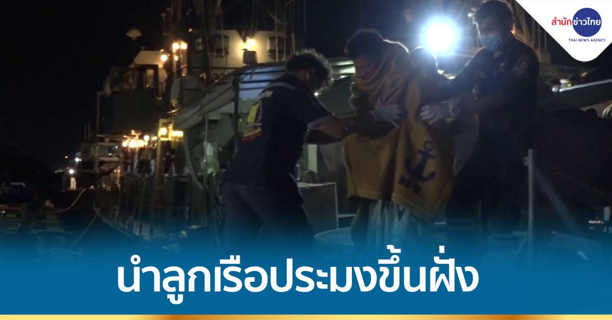สงขลา 22 ธ.ค. – ทัพเรือภาคที่ 2 นำลูกเรือประมงอับปางกลางอ่าวไทย ขึ้นฝั่งท่าเทียบเรือฐานทัพเรือสงขลา มีลูกเรือรอดชีวิต 1 คน หลังลอยคอกลางทะเลกว่า 30 ชั่วโมง เสียชีวิต 3 ราย ยังสูญหายอีก 1 ราย