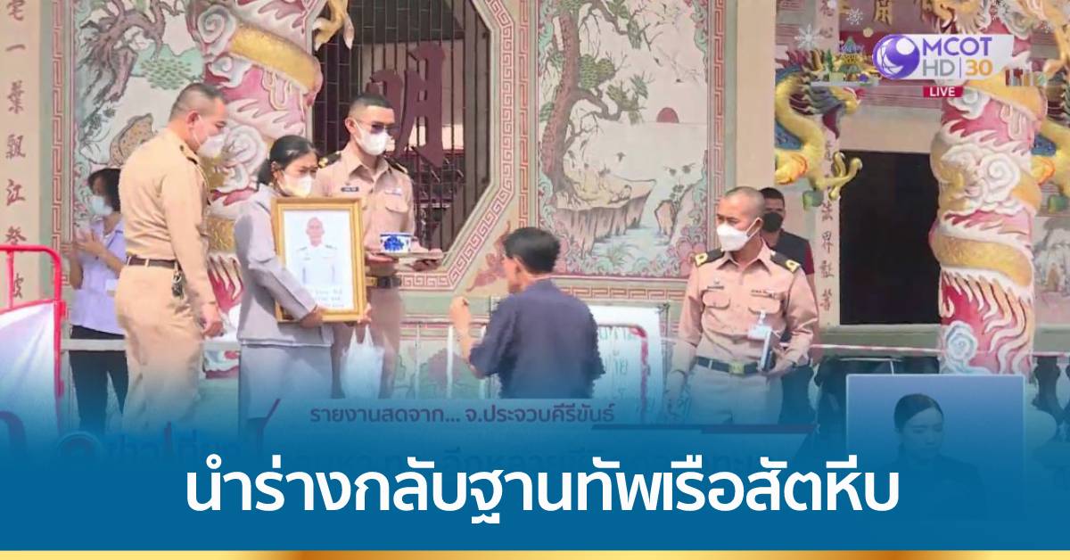 ขณะที่ครอบครัวกำลังพลที่เสียชีวิต ได้เดินทางมาที่ท่าเรือประจวบฯ เพื่อเชิญดวงวิญญาณ ก่อนที่ช่วงบ่ายจะเคลื่อนย้ายร่างทั้ง 6 กำลังพล ไปกองบิน 5 เพื่อส่งกลับไปที่ฐานทัพเรือสัตหีบ จ.ชลบุรี ประกอบพิธีร่วมสดุดี เเละพระราชทานน้ำหลวงอาบศพ