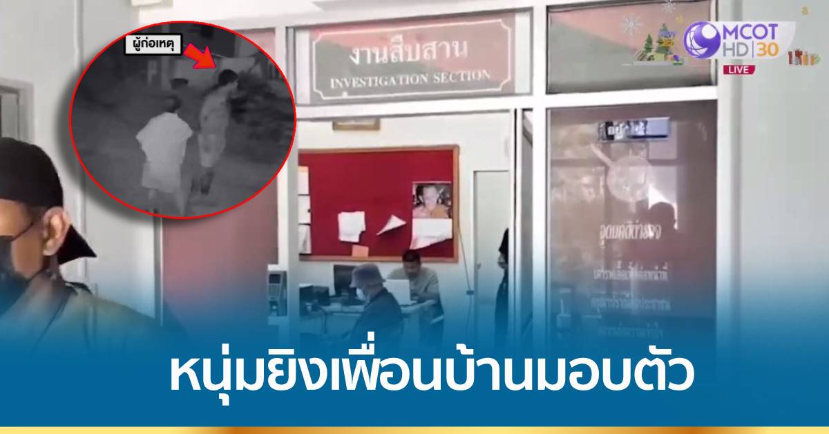 ชลบุรี 22 ธ.ค. –มือปืนยิงเพื่อนบ้านเข้ามอบตัว สภาพใบหน้าบวมปูด สารภาพยิงเพราะโมโหถูกทำร้ายก่อน