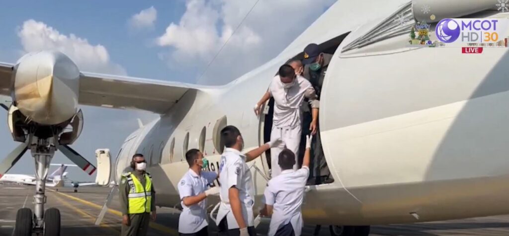 ส่วนช่วงบ่ายที่ผ่านมา พลทหารชนัญญู แก่นศรียา ผู้รอดชีวิตจากเหตุเรือหลวงสุโขทัยอับปาง ที่ได้รับการช่วยเหลือและส่งตัวไปรักษาที่โรงพยาบาลบางสะพาน เช้าวันที่ 20 ธ.ค.ที่ผ่านมา วันนี้สภาพร่างกายแข็งแรงมากขึ้นแล้ว แพทย์จึงอนุญาตให้ย้ายไปรักษาตัวต่อที่โรงพยาบาลสมเด็จพระนางเจ้าสิริกิติ์ อ.สัตหีบ จ.ชลบุรี โดยเครื่องบินลำเลียงของกองทัพเรือ จากกองบิน 5 อ.เมืองประจวบคีรีขันธ์