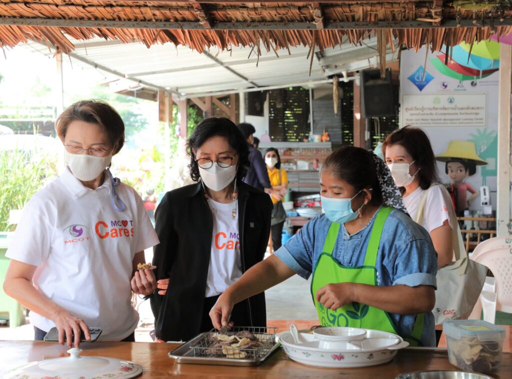 คณะกรรมการ และผู้บริหาร บมจ.อสมท และมูลนิธิอุทกพัฒน์ ยังได้เยี่ยมชมฐานการเรียนรู้ในชุมชน ได้แก่ บ้านข้าวตัง นาบัว และบ้านฟักข้าว พร้อมแลกเปลี่ยนเรียนรู้แนวคิดการดำเนินงานของชุมชนเพื่อให้เกิดประโยชน์ในพื้นที่ต่อไป