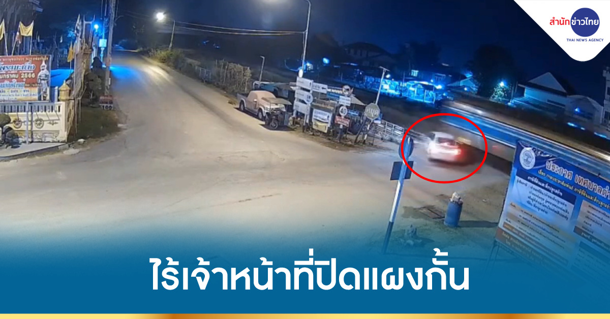 นครปฐม 25 ธ.ค.-กล้องวงจรปิดจับภาพ ไร้เจ้าหน้าที่ปิดแผงกั้น ทำรถไฟเฉี่ยวชนรถเก๋ง กระเด็นไปไกลกว่า 10 เมตร คนขับบาดเจ็บ บริเวณทางข้ามรางรถไฟหน้าวัดโพรงมะเดื่อ จ.นครปฐม
