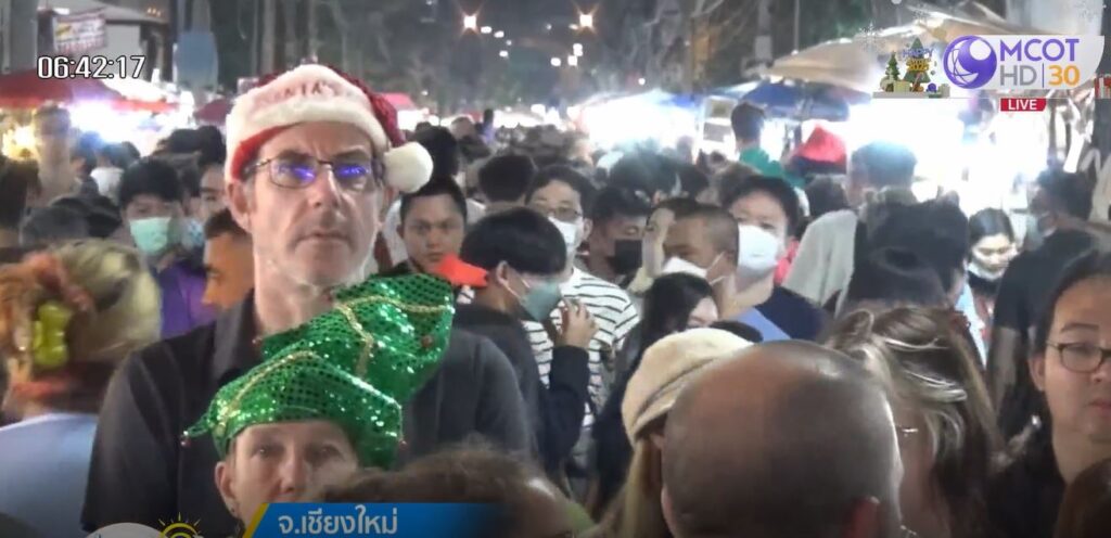 ที่เชียงใหม่ นักท่องเที่ยวชาวต่างชาติออกมาฉลองกันอย่างคึกคักตามร้านอาหารและโรงแรม ย่านไนท์บาร์ซ่าในตัวเมืองเชียงใหม่ ทั้งพนักงาน นักร้อง และนักดนตรี จะแต่งกายด้วยชุดซานตี้ ซานต้า ร่วมร้องเพลงเมอร์รี่คริสต์มาส บรรยากาศครึกครื้น รวมทั้งย่านถนนลอยเคราะห์ ซึ่งเป็นย่านบาร์เบียร์ มีนักท่องเที่ยวต่างชาติออกมาดื่มฉลองสนุกสนาน ทำให้บรรยากาศคริสต์มาสปีนี้เป็นปีแรกที่การท่องเที่ยวคึกคักในวันคริสต์มาส หลังสถานการณ์โควิค-19 ผ่อนคลาย