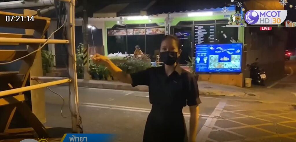 นางสาวกฤษณา อายุ 27 ปี พนักงานร้านอาหาร พาผู้สื่อข่าวสำนักข่าวไทยลงพื้นที่ตรวจสอบจุดเกิดเหตุ หลังจากเมื่อคืนวันที่ 24 ธันวาคมที่ผ่านมา ขณะขี่รถจักรยานยนต์กลับที่พัก เมื่อผ่านบริเวณสี่แยกโรงเรียนสอนคนตาบอดพระมหาไถ่ ม.5 ต.นาเกลือ อ.บางละมุง จ.ชลบุรี ถูกสายสื่อสารที่ห้อยตกลงมาขวางถนนเกี่ยวใบหน้าบริเวณหางตาบาดเจ็บ รถจักรยานยนเกือบเสียหลักล้ม