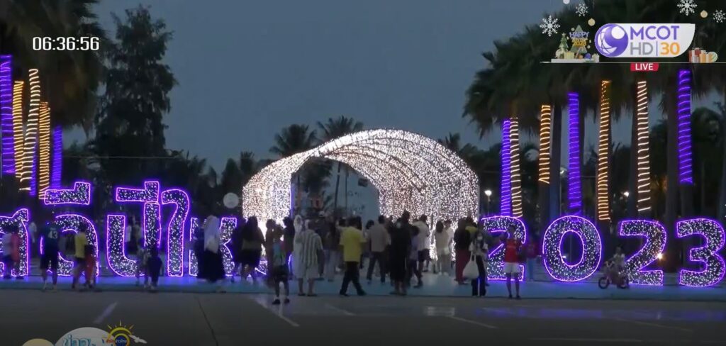 สงขลา 27 ธ.ค. – อบจ.สงขลา ประดับไฟสวัสดีปีใหม่ พร้อมอุโมงค์ไฟยาว 20 เมตร สร้างสีสันเทศกาลนับถอยหลังเข้าสู่ปีใหม่ 2566 ประชาชนและนักท่องเที่ยวแห่ร่วมถ่ายภาพคึกคัก