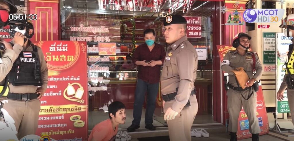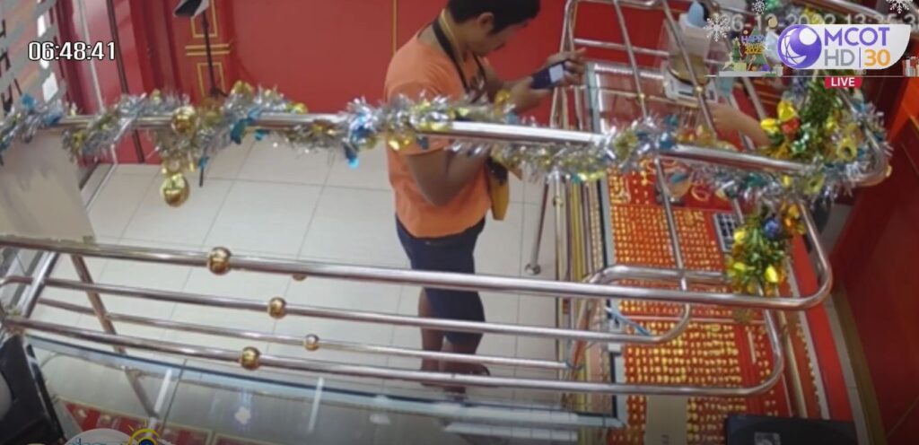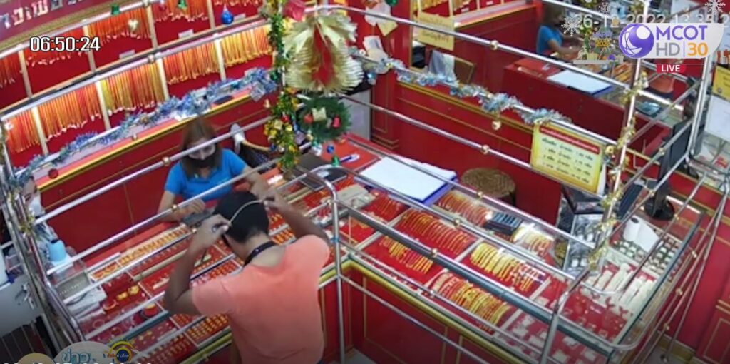 ภาพจากกล้องวงจรปิดบันทึกช่วงที่คนร้ายทำทีเข้ามาซื้อทองที่ร้านทอง เพชรทองสุวรรณา ตั้งอยู่บริเวณปากซอยถนนราษฎร์อุทิศ เขตเทศบาลนครหาดใหญ่ จ.สงขลา ก่อนเอาสร้อยคอทองคำมาสวมใส่ จากนั้นอาศัยจังหวะที่อ้างว่ากำลังจ่ายเงินด้วยการโอนเงินผ่านโทรศัพท์มือถือ พยายามวิ่งหลบหนี แต่ประตูนิรภัยของร้านทำงาน ทำให้ไม่สามารถหนีออกมาได้