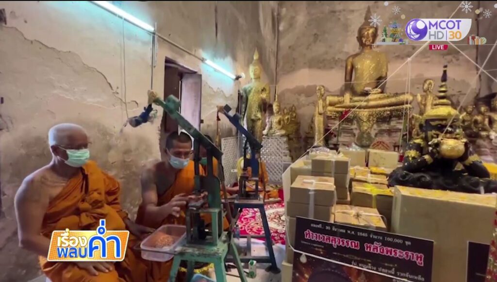 ที่วัดอินทาราม ต.เหมืองใหม่ อ.อัมพวา จ.สมุทรสงคราม พระครูพิศิษฏ์ประชานาถ หรือ ดร.หลวงพ่อแดง นันทิโย รองเจ้าคณะอำเภออัมพวา และเจ้าอาวาสวัดอินทาราม นำคณะสงฆ์จัดพิธีพุทธาภิเษกท้าวเวสสุวรรณหลังพระราหู บรรจุไหม 5 สี รุ่นหนุนดวง ปลดหนี้ รวยล้นเหลือ ลาภผลพูนทวี เนื้อผง 100,000 องค์ และเหรียญ ภายในอุโบสถมหาอุตม์หลวงพ่อโต อายุกว่า 300 ปี เตรียมแจกพุทธศาสนิกชนผู้มีความศรัทธาในท้าวเวสสุวรรณและพระราหู ได้มีไว้บูชาในช่วงเทศกาลปีใหม่ 2566 โดยพระครูพิศิษฏ์ประชานาถ นำมวลสารสมเด็จวัดระฆัง พร้อมส่วนผสมสูตรแบบโบราณเพื่อความเข้มขลัง ปั๊มพิมพ์ท้าวเวสสุวรรณเนื้อผง เป็นปฐมฤกษ์ ก่อนจเป็นประธานจุดเทียนชัย ขณะที่คณะสงฆ์ 9 รูป เจริญพระพุทธมนต์ ชะยันโตชัยยะมงคลคาถาและนั่งปรกอธิษฐานจิต ปะพรมน้ำพระพุทธมนต์เพื่อความเป็นสิริมงคล
