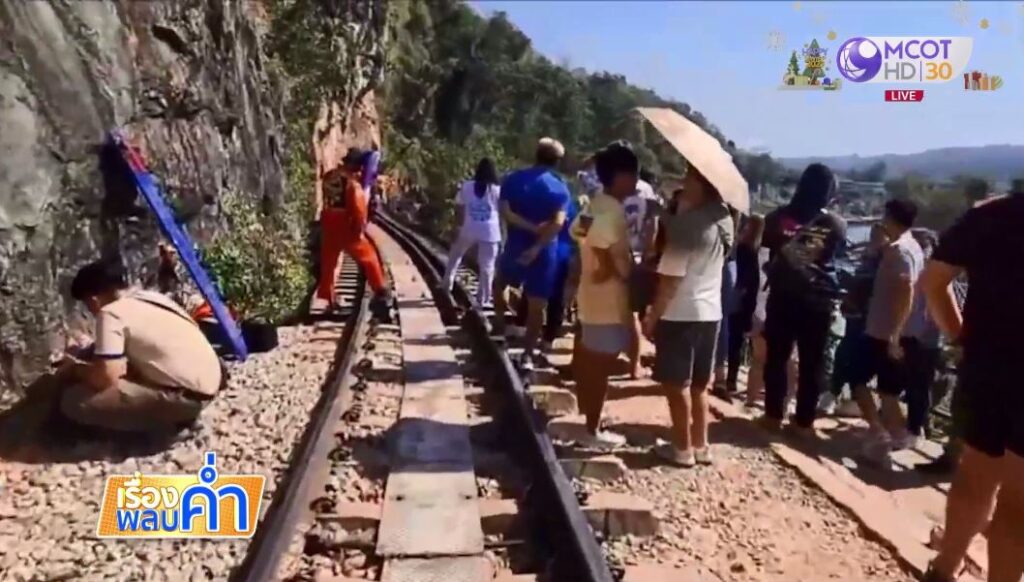 กาญจนบุรี 28 ธ.ค. – อุทาหรณ์ไม่ควรทำ! นักท่องเที่ยวต่างชาติเปิดประตูขบวนรถไฟ หวังถ่ายภาพความสวยงามถ้ำกระแซ แต่เสียหลักพลัดตกร่างกระแทกพื้นลึก 8 เมตร เสียชีวิตทันที