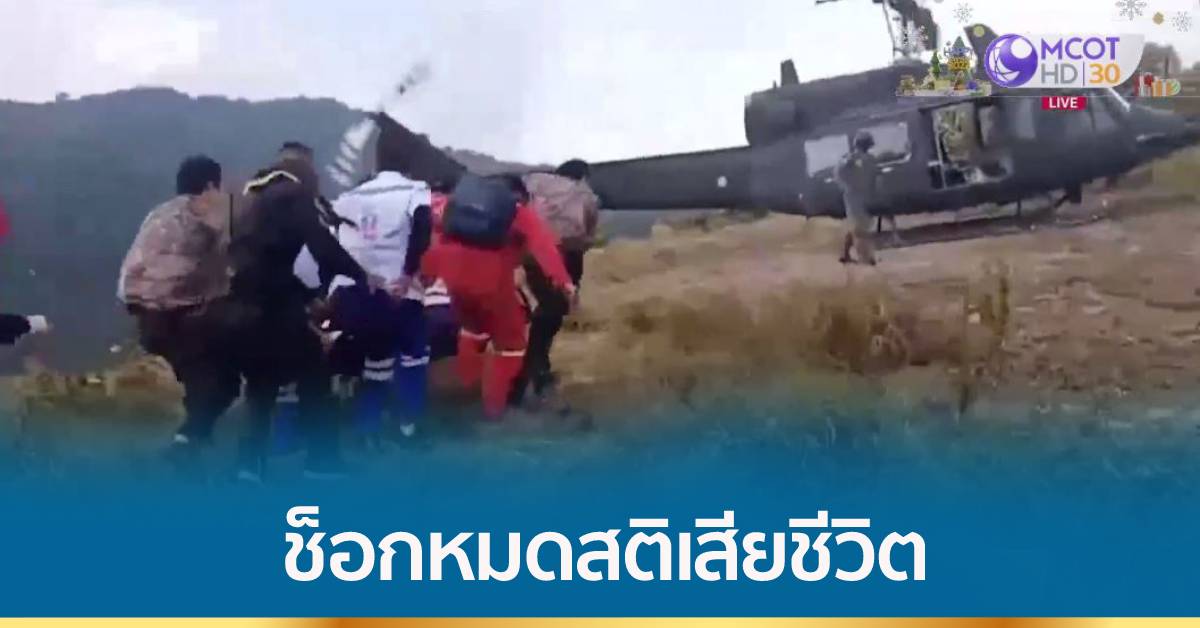 ตาก 28 ธ.ค. – นักท่องเที่ยวท้าลมหนาว เดินขึ้นยอดดอยทูเล อ.ท่าสองยาง จ.ตาก เพื่อชมทะเลหมอก ด้วยน้ำหนักตัวที่มากถึง 120 กิโลกรัม และมีโรคประจำตัว ทำให้ช็อกหมดสติ เพราะร่างกายปรับสภาพไม่ทัน แต่ด้วยเส้นทางที่ยากลำบาก ต้องเดินเท้าเข้าไปหลายชั่วโมง กว่าเจ้าหน้าที่จะไปถึงก็เสียชีวิตไปแล้ว ต้องใช้เฮลิคอปเตอร์นำศพลงมา