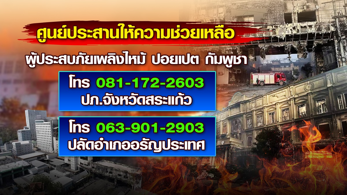 สำหรับศูนย์ประสานให้ความช่วยเหลือคนไทยผู้ประสบภัยฯ หากต้องการติดต่อ หรือติดตามหาญาติ สามารถโทรศัพท์ไปได้ที่หมายเลข 081 172 2603 ซึ่งเป็นเบอร์ของ ปภ.จังหวัดสระแก้ว และปลัดอำเภออรัญประเทศ ที่หมายเลข 063 901 2903. – สำนักข่าวไทย