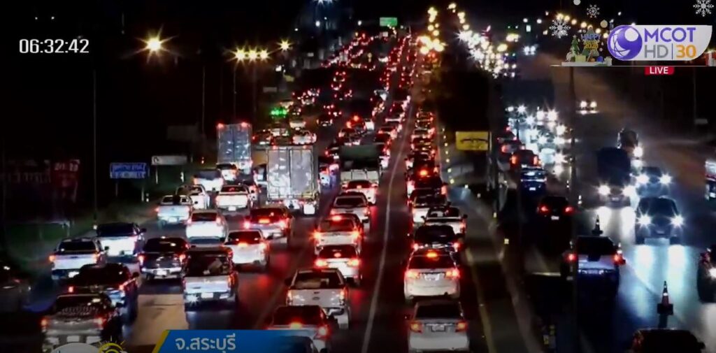 ภูมิภาค 30 ธ.ค. – ประชาชนแห่กลับภูมิลำเนาฉลองปีใหม่ ส่งผลฝั่งขาเข้าตัวเมืองสระบุรี ตลอดคืนที่ผ่านมา (29 ธ.ค.) ปริมาณรถมากตั้งแต่ อ.วังน้อย จ.พระนครศรีอยุธยา เจ้าหน้าที่ต้องเปิดเลนพิเศษเพื่ออำนวยความสะดวก