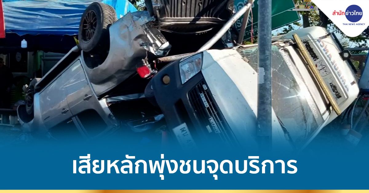 นครราชสีมา 31 ธ.ค.- กระบะเสียหลักพุ่งชนจุดบริการประชาชนใน ต.ด่านช้าง อ.บัวใหญ่ จ.นครราชสีมา รถเสียหาย 6 คัน บาดเจ็บ 6 คน