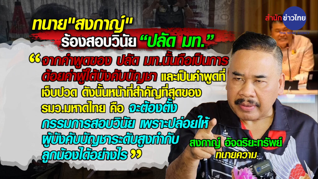 ทั้งนี้ ระบุว่า รัฐมนตรีว่าการกระทรวงมหาดไทย ต้องตั้งกรรมการสอบวินัย เพราะปล่อยให้ผู้บังคับบัญชาระดับสูงทำกับลูกน้องอย่างหยาบคาย ซึ่งเรื่องนี้ค่อนข้างร้ายแรง แค่ออกมาขอโทษน้อยไป เรื่องนี้จะไม่ปล่อยผ่าน เมื่อกลับ กทม. จะจัดชุดใหญ่ นอกจากคดีอาญาแล้ว ยังต้องตั้งกรรมการสอบวินัย แต่ต้องพ้นจากตำแหน่งก่อน จึงขอให้นายกรัฐมนตรีและรัฐมนตรีว่าการกระทรวงมหาดไทย ควรทำการโยกย้ายไปก่อน เป็นลำดับแรก