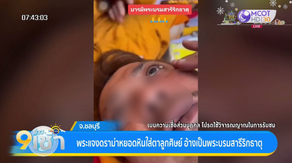 ชลบุรี 2 ม.ค. – แจงดราม่าคลิปพระสงฆ์นำเม็ดหินอ้างเป็นพระบรมสารีริกธาตุใส่ในดวงตาลูกศิษย์ เจ้าอาวาสเผยต้องการให้ประชาชนที่ศรัทธา ได้ชมว่า พระบรมสารีริกธาตุเป็นของแท้และมีอยู่จริง