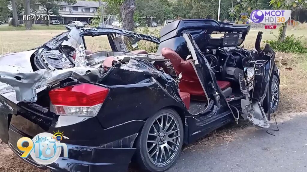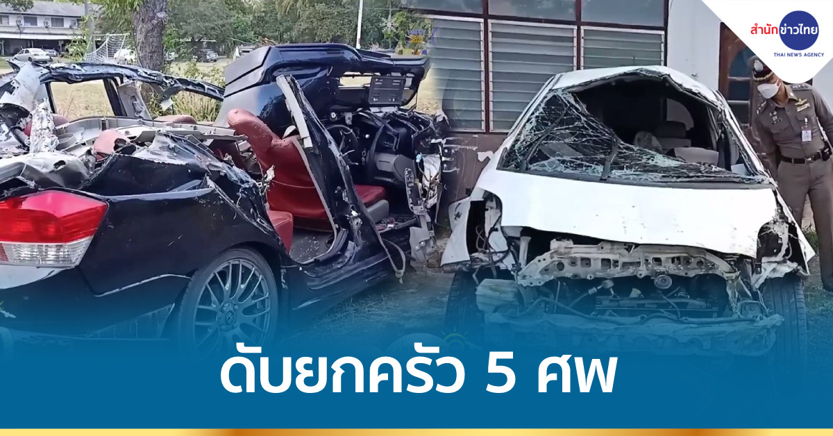 ศรีสะเกษ 3 ม.ค. – หนุ่มเมาซิ่งเก๋งชนท้าย จยย. เสียหลักปีนเกาะกลางถนน พุ่งข้ามเลนตกทับรถเก๋งอีกคัน ดับสลด ยกครัว 5 ศพ เจ็บหลายราย